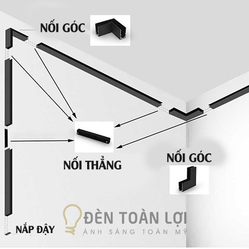 - Nối Góc & nguồn nối góc: Góc có 2 loại góc Đèn Toàn Lợi xin thông tin bằng hình ảnh minh hoạ. (nối góc 90 độ, nối góc trong, nối góc ngoài). Để nối thành công bạn cần sử dụng thêm nguồn nối góc.