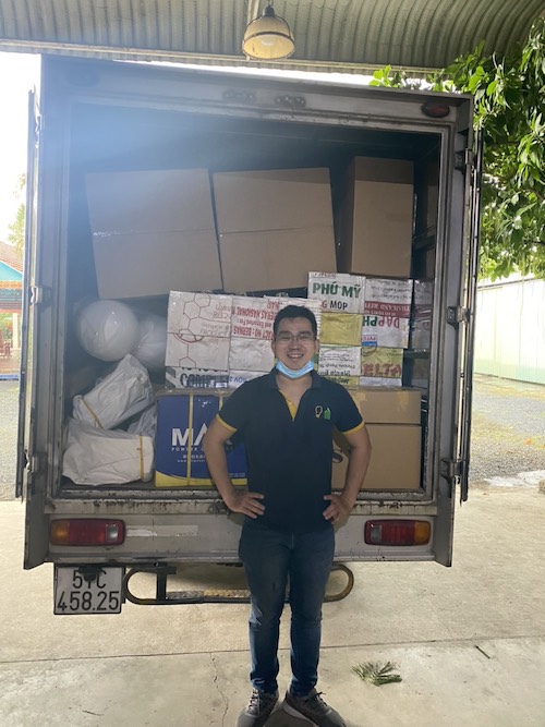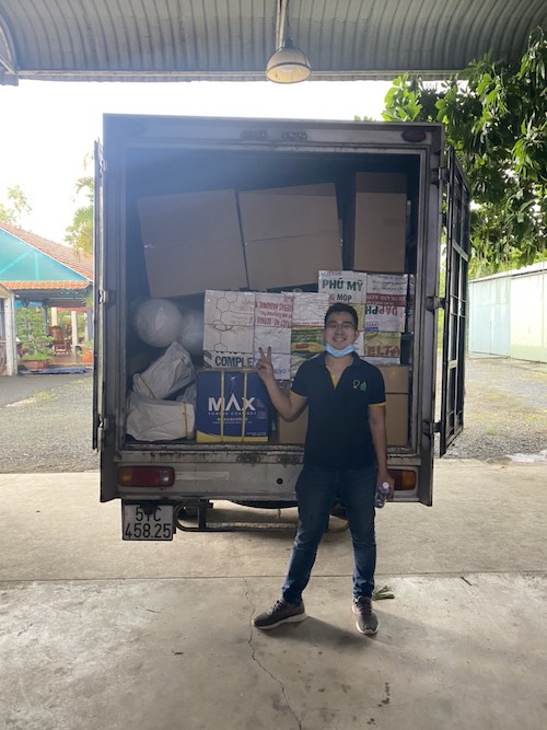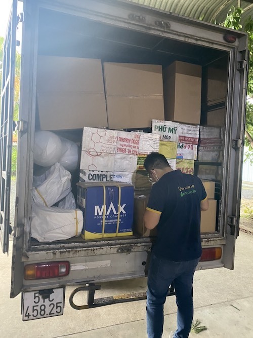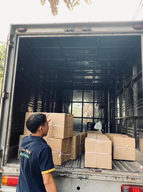 Hình ảnh giao hàng đèn cột trụ cho khách hàng của cửa hàng Đèn Toàn Lợi.