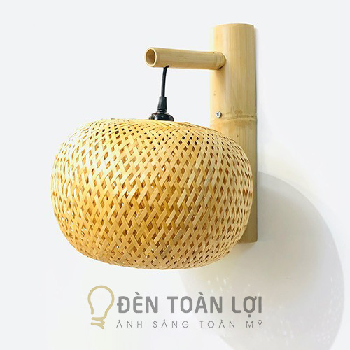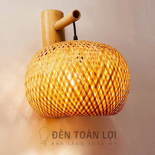 Chi tiết mẫu đèn mây tre vách tường hình quả bí