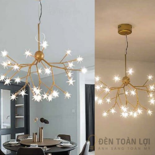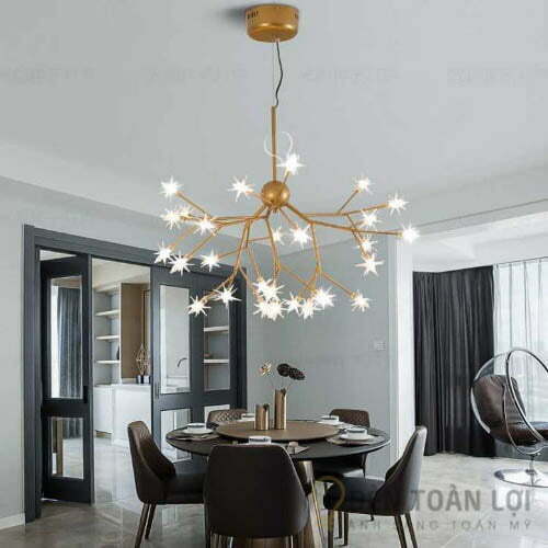 Đèn thả hoa sao thủy tinh trang trí phòng khách biệt thự sang trọng