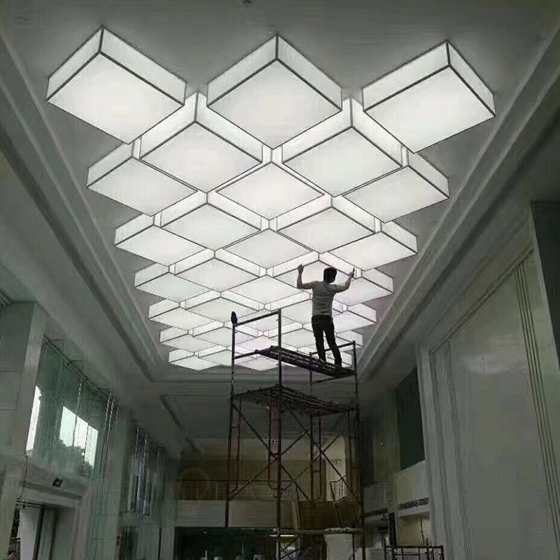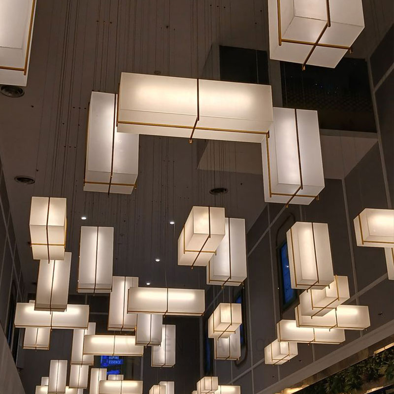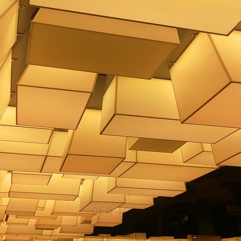 Đèn vải khối hộp chữ nhật trang trí sảnh gia công theo yêu cầu