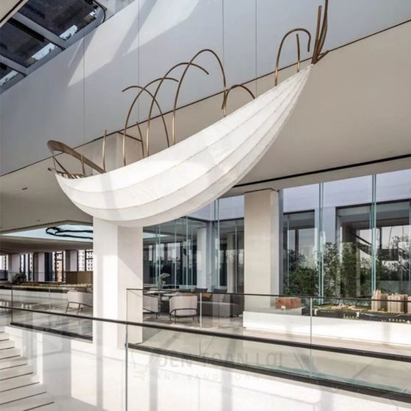 Đèn vải nghệ thuật thuyền trăng gia công theo yêu cầu